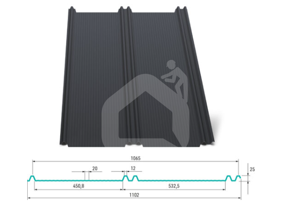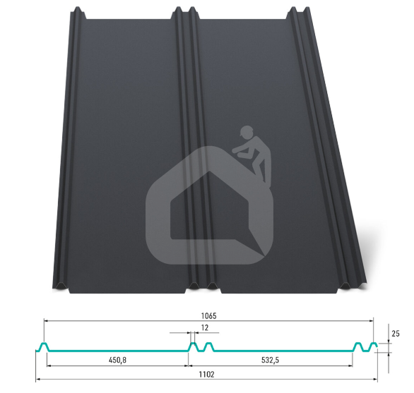 Šī jumta plāksne piedāvā vairāk nekā divreiz lielāku pārklājuma platumu nekā tradicionālā plāksne. Papildu dubults iespiedums loksnes centrā pastiprina un nostiprina segumu. Pieejama divos variantos: ar viļņiem vai gludu virsmu. Ideāli piemērota viena vai daudzdzīvokļu mājām, kā arī viesu namiem.