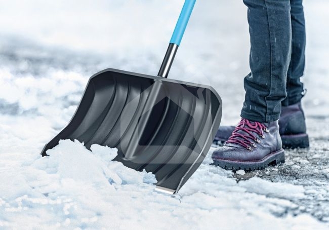 - Dziļā lāpstas galva neļauj sniegam noslīdēt.